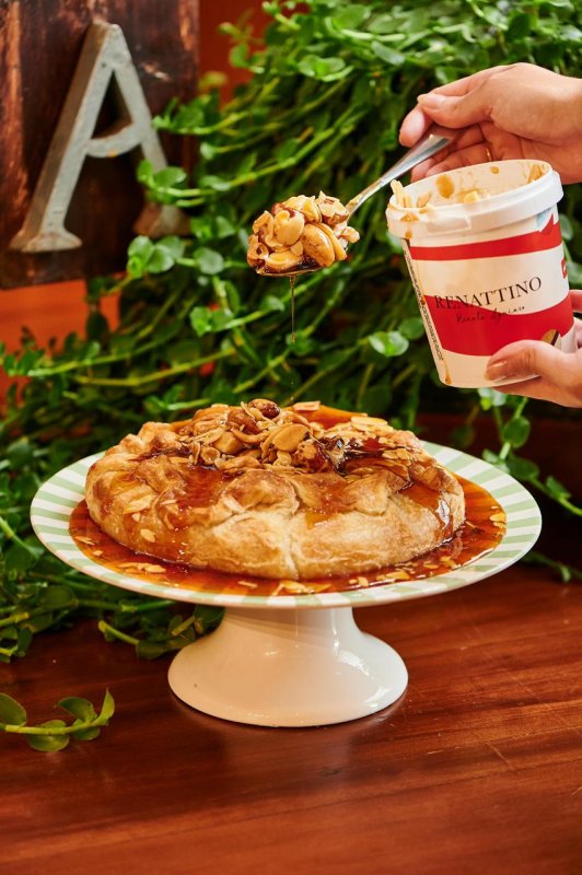 RENATO AGUIAR traz direto do forno mais uma de suas delícias: o Brie Folhado. Uma receita tradicional dos eventos assinados por Renato Aguiar, é ideal para um impressionar em um jantar entre amigos, podendo servir até 12 pessoas. Indicamos levar o nosso caramelo de castanhas para elevar ainda mais a experiência deste prato. Produto que efetuamos a venda mediante encomenda ou conferir com a loja disponibilidade.