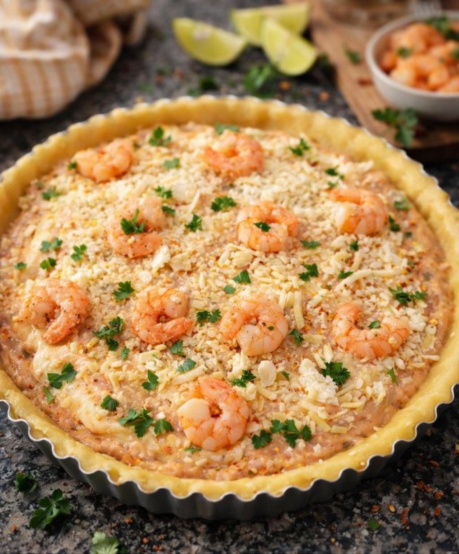 Deliciosa torta de camarão com catupiry na massa podre. Produto artesanal elaborado por uma produtora de Passos/MG.