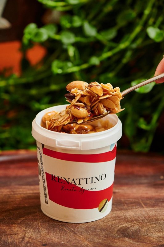 O Caramelo de Castanhas do Renattino é um dos produtos mais versáteis deste toldinho e vou lhe explicar o motivo. Ele possui castanhas do Brasil, caju e amêndoas laminadas em sua composição o que abrilhanta ainda mais este produto. Todos os nossos clientes já sabem mas vou lhe contar também.