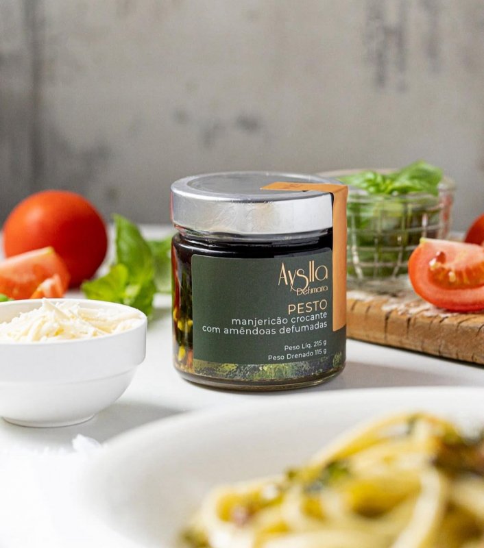 PESTO DE MANJERICÃO COM AMÊNDOAS DEFUMADAS - AYSLLA DEFUMARIA