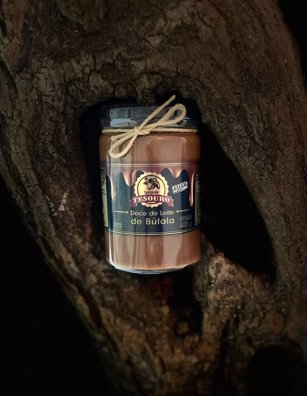 O doce de leite de búfala do Laticínio Tesouro é um produto único, possui um sabor suave mas ao mesmo tempo marcante como um bom produto limpo. Um de seus segredos é a reduzida quantidade de açúcar tornando-o mais leve, por isso o apelidamos carinhosamente de "brigadeiro de colher". Em pouco tempo já recebeu honrosa classificação em concursos nacionais que participou. Nossos clientes elogiam muito nosso doce de leite de búfala por ser muito versátil, inclusive em receitas. Se você quer saber o porquê, passe no QUEJU e leve o seu. Garantimos que depois de experimentar, você irá se surpreender.
