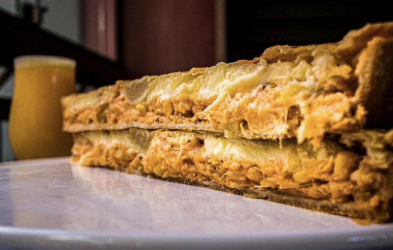 Deliciosa torta de frango com catupiry na massa podre. Produto artesanal de uma produtora muito caprichosa de Passos/MG.