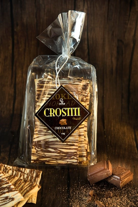 Tradicional massinha feita artesanalmente coberta com finas riscas de chocolate ao leite e caramelo.
