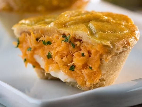 Empada de bacalhau com catupiry, mas não se engane, ela com certeza será a melhor empada que comerá em sua vida. Massa muito leve e fininha, o que garante uma qualidade alta para este produto. Retire o papel filme e leve ao forno por aprox 25 a 40min dependendo da potência do seu forno (ou airfryer).