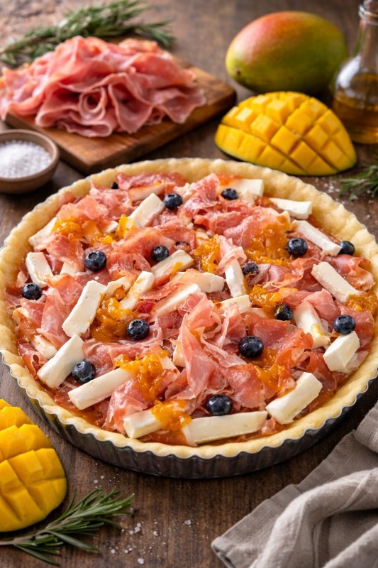TORTA DE PRESUNTO SERRANO COM CHUTNEY DE MANGA E QUEIJO TIPO CAMEMBERT - CONGELADOS MARSELHA