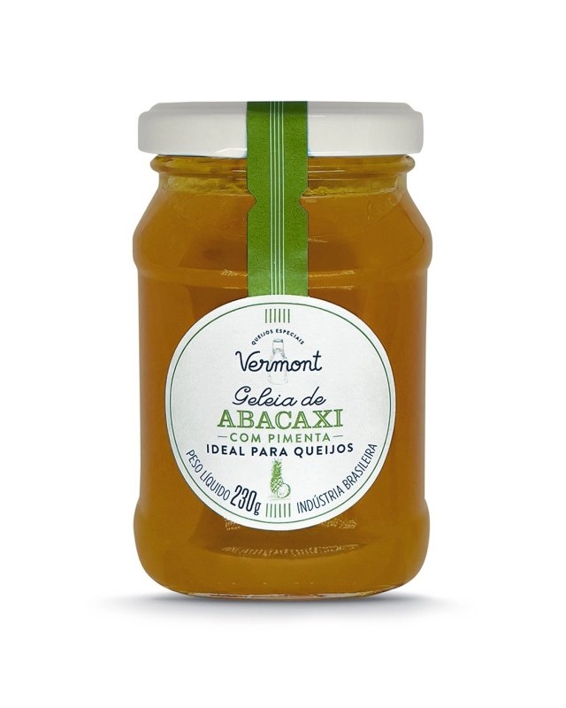 Uma geleia desenvolvida especialmente para harmonizar com queijos de mofo branco, como Brie e Camembert, queijo Lua Cheia, orvalho de vaca e indico também o chabichou da Serra das Antas, queijos geralmente suaves, amanteigados, moderadamente salgados, e com notas de cogumelos. O delicioso sabor do abacaxi e leve picância da pimenta brasileira dedo de moça, além da textura cremosa, devido a ausência de pectina nesta receita, substância natural gelificante que deixa geléias comuns com textura de gelatina, fazem desta geleia uma ótima opção em tábuas de queijos.
