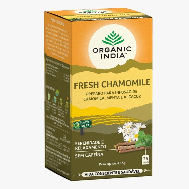 O sabor calmante da camomila em conjunto com a menta e o alcaçuz compõe uma infusão perfeita para trazer serenidade, especialmente à noite. Auxiliando para um sono reparador e dando suporte ao ciclo circadiano. O Chá Fresh Chamomile faz parte de uma linha produzida em collab com Romanna Remor. Formulações exclusivas e especialmente selecionadas para extrair ao máximo os benefícios e nutrientes de cada ativo natural com o mínimo de impacto negativo sobre o sistema. O compromisso da Organic India é promover uma vida saudável, feliz e digna para cada agricultor e suas famílias. E levar até você uma infusão de qualidade e que nutre o corpo de dentro para fora.