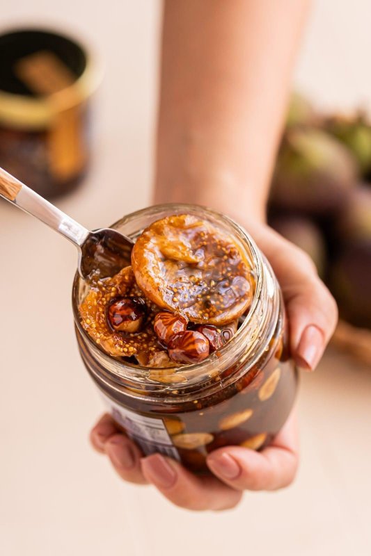 O FIGO TURCO com conhaque, avelã e mel é uma obra de arte gastronômica feita para surpreender os paladares mais exigentes. Descubra o que acontece quando a natureza e a maestria se unem em um pote. Ayslla seleciona os melhores figos turcos, conhecidos por sua textura macia e sabor naturalmente adocicado para criar uma compota que impressiona. Cada figo é cuidadosamente acomodado em um banho de mel puro, que preserva sua integridade e realça sua doçura. O toque final é dado pelo conhaque que infunde a compota com notas quentes e complexas, logo em seguida as avelãs crocantes adicionam uma textura inesperada e um sabor que equilibra toda a composição. Este produto é mais do que uma compota, é uma experiência ao paladar. A cada colherada, você sentirá a maciez do figo, as sementes explodem, o calor do conhaque e a crocância da avelã, tudo em perfeita harmonia com o dulçor do mel.