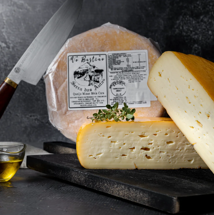 O queijo Vô Bastião é um tradicional queijo mineiro de leite de vaca da região sul de Minas Gerais. Compacto e com pequenas olhaduras, tem cor amarela clara e uma casca escovada que, após 30 dias de maturação, é protegida com uma fina camada de resina alimentar para evitar ressecamento. Seu sabor é suave, lácteo e levemente ácido.