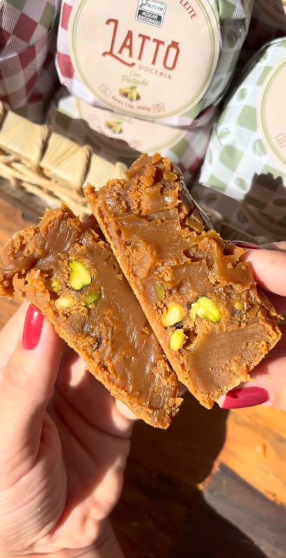 Ó procê vê! A verdadeira essência de Minas Gerais num só doce. Nossa bala de doce de leite, com 300g de pura gostosura, é tudo que você precisa pra este dia, acredita em mim rsrsrsrs. Com uma casquinha crocante por fora e um recheio cremoso e macio por dentro e agora com um pistache inteiro dentro dela. Querida pelos amantes de doces e perfeita para se presentear. Vem pro QUEJU trem.